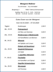 ...die wir in unserem Geschäft und auch beim mobilen Verkauf anbieten, stammen fast ausschließlich aus eigener Herstellung. Die Verkaufsfahrten mit dem Auto gehen von Rohmatt aus über Häg, Ehrsberg, Herrenschwand, Todtmoos, Schönau, Fröhnd und Menzenschwand bis nach Ibach.