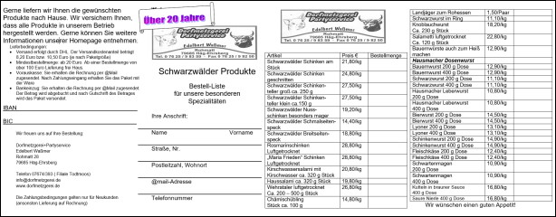 Auf Wunsch senden wir Ihnen unsere Schwarzwälder Speck- und Hausmacherspezialitäten gerne zu.